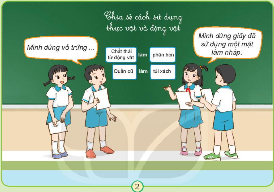 2. Chia sẻ một số việc em và gia đình đã làm để những người xung quanh cùng sử dụng hợp lí thực vật và động vật.