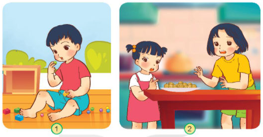 Tình huống 1: Em sẽ ngăn cản em bé không đưa viên bi vào miệng và nói: “Em đừng cho viên bi vào miệng nhé, nó rất cứng, không may em nuốt phải thì sẽ bị tắc đường hô hấp và phải đi bệnh viện đấy”.