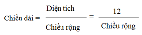 Vì Chiều dài . chiều rộng = diện tích =12 ( không đổi) nên ta có: