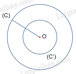 Qua phép vị tự tâm O tỉ số \(k =  – \frac{1}{2}\) thì điểm O biến thành chính nó. Do đó, ảnh của đường tròn (C) là đường tròn (C’) có tâm O và bán kính \(R’ = \;\left| { – \frac{1}{2}} \right|R = \frac{1}{2}R\).