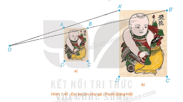 Quan sát hai bức tranh em bé ôm chú gà ở phần mở đầu bài học và chỉ ra phép vị tự biến bức tranh nhỏ thành bức tranh lớn và phép vị tự biến bức tranh lớn thành bức tranh nhỏ.