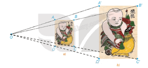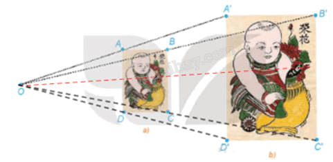 Vậy phép vị tự \({V_{\left( {O,2} \right)}}\) biến bức tranh nhỏ thành bức tranh lớn. Khi đó, phép vị tự \({V_{\left( {O,\frac{1}{2}} \right)}}\) biến bức tranh lớn thành bức tranh nhỏ.