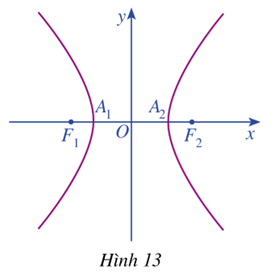 Trong mặt phẳng tọa độ \(Oxy\), ta xét hypebol (H) với phương trình chính tắc \(\frac{{{x^2}}}{{{a^2}}} – \frac{{{y^2}}}{{{b^2}}} = 1\) trong đó \(a > 0,b > 0\) (Hình 13)