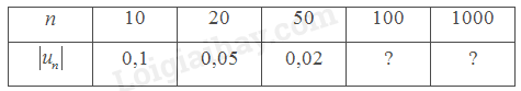 Vậy \(\left| {{u_n}} \right| < 0,01\) khi \(n > 100\).