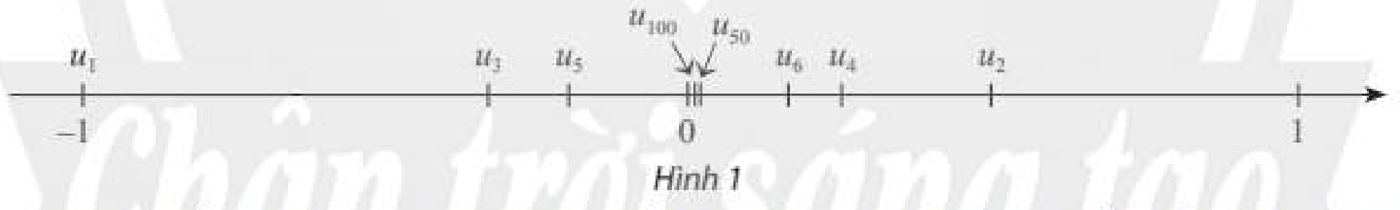 c) Một số số hạng của dãy số được biểu diễn trên trục số như Hình 1.