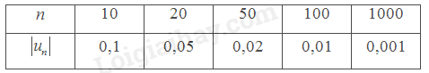Vậy \(\left| {{u_n}} \right| < 0,001\) khi \(n > 1000\).
