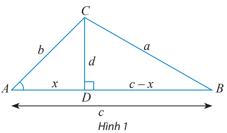 a) Cho tam giác ABC không phải là tam giác vuông với góc A nhọn và \(\widehat C \ge \widehat B.\) Vẽ đường cao CD và đặt tên các độ dài như trong Hình 1.