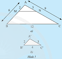 Do đó, \(\frac{{MN}}{{BC}} = \frac{1}{3} \Leftrightarrow \frac{{MN}}{{12}} = \frac{1}{3} \Rightarrow MN = \frac{{12.1}}{3} = 4\).