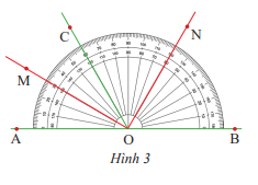 Tìm tia phân giác của các góc: \(\widehat {AOC}\) và \(\widehat {COB}\) trong hình 3.