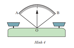 Em hãy cho biết khi cân thăng bằng thì kim ở vị trí nào của \(\widehat {AOB}\)(Hình 4)