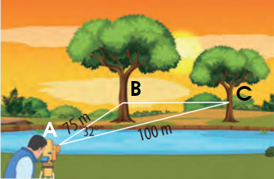 \(\begin{array}{l} \Rightarrow {a^2} = {100^2} + {75^2} – 2.100.75.\cos {32^o} \approx 2904,28\\ \Leftrightarrow BC = a \approx 54\end{array}\)