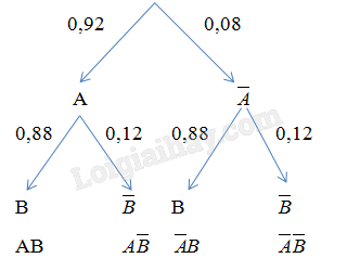 a) \(P\left( {A\overline B } \right) = 0,92.0,12 = 0,1104\)