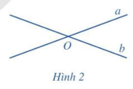 a)     Nếu a và b cắt nhau tại O (Hình 2) thì góc giữa hai đường thẳng a, b được xác định như thế nào?