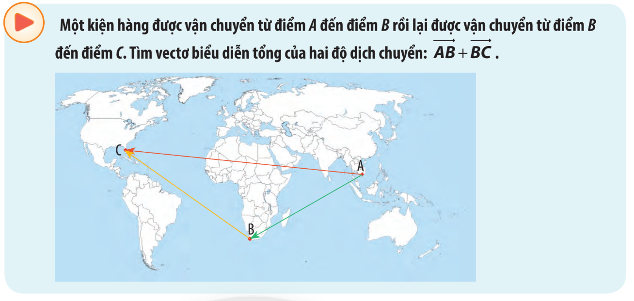 Một robot thực hiện liên tiếp hai chuyển động có độ dịch chuyển lần lượt được biểu diễn bởi 2 vectơ \(\overrightarrow {AB} \) và \(\overrightarrow {BC} \) (Hình 1). Tìm vectơ biểu diễn sự dịch chuyển của rô bốt sau hai sự dịch chuyển trên.