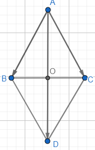 \(AD = 2AO = a\sqrt 3  \Rightarrow \left| {\overrightarrow {AB}  + \overrightarrow {AC} } \right| = a\sqrt 3 \)