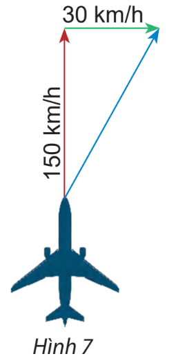 Một máy bay có vận tốc chỉ theo hướng bắc, vận tốc gió là một vectơ theo hướng đông như hình 7. Tính độ dài vectơ tổng của hai vectơ nói trên.