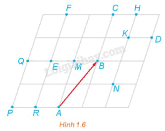 Trong Hình 1.6, tìm ảnh của các điểm M, N, P, Q, B qua phép tịnh tiến theo vectơ \(\overrightarrow {AB} \)