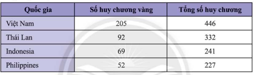 Thống kê số huy chương bốn quốc gia dẫn đầu SEA Games 31 được cho trong bảng số liệu sau: