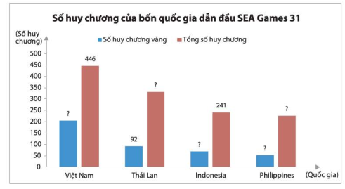Biểu đồ cột kép biểu diễn số huy chương của bốn quốc gia dẫn đầu SEA Games 31: