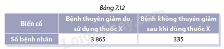 Một viện nghiên cứu đang nghiên cứu loại thuốc X chữa bệnh thoái hóa khớp. Ở giai đoạn thử nghiệm lâm sàng pha \(3,\) viện nghiên cứu tiến hành thử nghiệm với một số lượng lớn tình nguyện viên có bệnh này. Các tình nguyện viên có giới tính khác nhau, thuộc nhiều lứa tuổi, sống ở nhiều vùng miền khác nhau. Trong số những bệnh nhân tham gia thử nghiệm có \(4200\) người dùng thuốc X và kết quả dùng thuốc sau \(6\) tuần được thống kê ở Bảng 7.12: