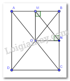 Cho hình chữ nhật ABCD có hai đường chéo AC và BD cắt nhau tại O. Gọi M, N lần lượt là hình chiếu của O trên AB, BC. Chứng minh: \(MN = \dfrac{1}{2}AC\)
