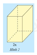 Hình hộp chữ nhật \(A\) có chiều rộng \(2x\), chiều dài và chiều cao đề gấp \(k\) lần chiều rộng (Hình 2).