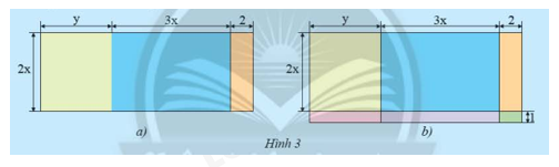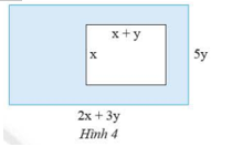 Diện tích hình chữ nhật lớn là: \(5y.\left( {2x + 3y} \right) = 5y.2x + 5y.3y = 10xy + 15{y^2}\)