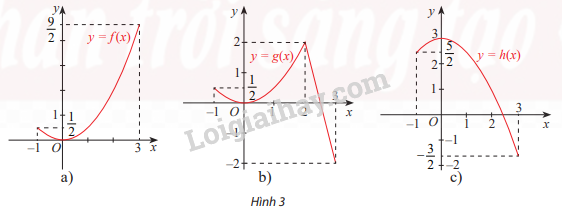 b) \(\mathop {\max f(x)}\limits_{[ – 1;3]}  = f(3) = \frac{9}{2}\) và \(\mathop {\max g(x)}\limits_{[ – 1;3]}  = g(2) = 2\)
