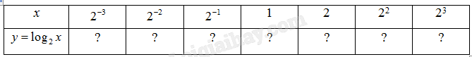 a) Tính (y = {log _2}x) khi x lần lượt nhận các giá trị 1; 2; 4. Với mỗi giá trị của x > 0 có bao nhiêu giá trị của (y = {log _2}x) tương ứng?