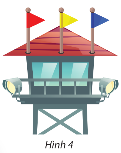 Tại một trạm quan sát có sẵn 5 lá cờ màu đỏ, trắng, xanh, vàng và cam (kí hiệu Đ, T, X, V, C). Khi cần báo một tín hiệu, người ta chọn ba lá cờ và cắm vào 3 vị trí sẵn thành một hàng (Xem hình 4)