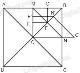 Suy ra \(\frac{{OE}}{{ON’}} = \frac{{\sqrt 2 }}{2},\,\frac{{ON}}{{OC’}} = \frac{{\sqrt 2 }}{2}\), do đó \(\frac{{OE}}{{ON’}} = \frac{{ON}}{{OC’}} = \frac{{\sqrt 2 }}{2}\).