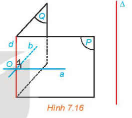 Cho điểm O và đường thẳng \(\Delta \) không đi qua O. Gọi d là đường thẳng đi qua O và song song với \(\Delta \). Xét hai mặt phẳng phân biệt tuỳ ý (P) và (Q) cùng chứa d. Trong các mặt phẳng (P), (Q) tương ứng kẻ các đường thẳng a, b cùng đi qua O và vuông góc với d (H.7.16). Giải thích vì sao mp(a, b) đi qua O và vuông góc với \(\Delta \).