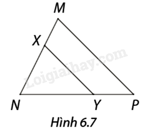 Trong hình 6.7, \(XY\) song song với \(MP.\) Em hãy cho biết tên đoạn thẳng ở các ô?.