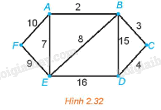 Giải bài toán người đưa thư đối với đồ thị có trọng số trên Hình 2.32.