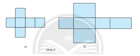 Trong hai tấm bìa ở Hình 9, tấm nào gấp được hình hộp chữ nhật, tấm bìa nào gấp được hình lập phương?