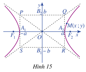 + Hai đường thẳng PR và QS lần lượt có phương trình \(y =  – \frac{b}{a}x,y = \frac{b}{a}x\) được gọi là hai đường tiệm cận của hypebol (H)