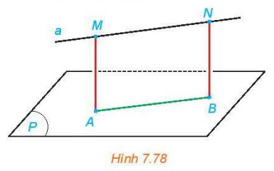 Cho đường thẳng a song song với mặt phẳng (P). Lấy hai điểm M, N bất kì thuộc a và gọi A, B tương ứng là các hình chiếu của chúng trên (P) (H.7.78).