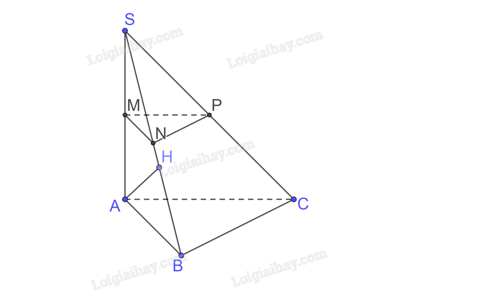 +) \(\left. \begin{array}{l}PN//BC,MN//AB\\PN \cap MN = \left\{ N \right\},BC \cap AB = \left\{ B \right\}\end{array} \right\} \Rightarrow \left( {MNP} \right)//\left( {ABC} \right)\)