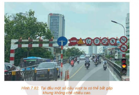 Ở một con dốc lên cầu, người ta đặt một khung khống chế chiều cao, hai cột của khung có phương thẳng đứng và có chiều dài bằng 2,28 m. Đường thẳng nối hai chân cột vuông góc với hai đường mép dốc. Thanh ngang được đặt trên đỉnh hai cột. Biết dốc nghiêng 150 so phương nằm ngang. Tính khoảng cách giữa thanh ngang của khung và mặt đường (theo đơn vị mét và làm tròn kết quả đến chữ số thập phân thứ hai). Hỏi cầu này có cho phép xe cao 2,21 m đi qua hay không?