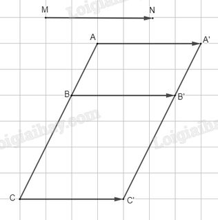 b) Vì \(\overrightarrow {AA’}  = \overrightarrow {MN} ,\,\overrightarrow {BB’}  = \overrightarrow {MN} \)  nên \(\overrightarrow {AA’}  = \overrightarrow {BB’} \), suy ra ABB’A’ là hình bình hành.