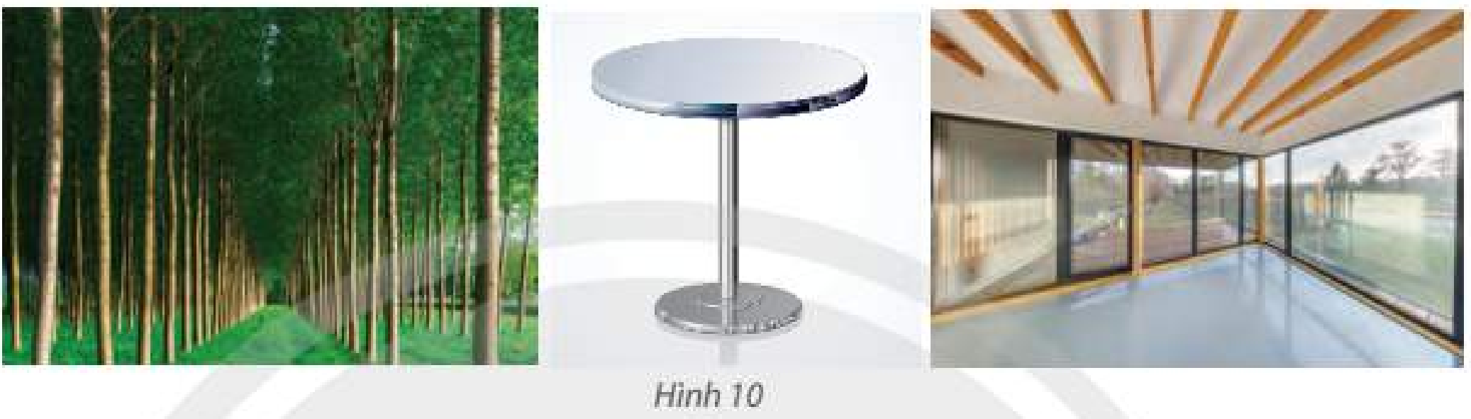 b) Mặt bàn và mặt đất cùng vuông góc với chân bàn.
