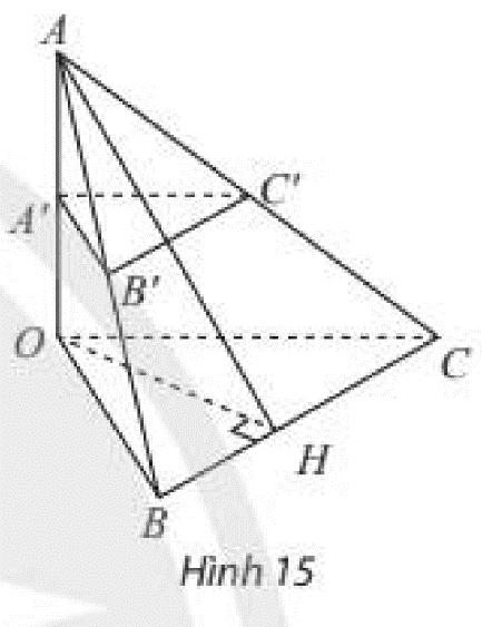 Cho tứ diện \(OABC\) có \(OA\) vuông góc với mặt phẳng \(\left( {OBC} \right)\) và có \(A’,B’,C’\) lần lượt là trung điểm của \(OA,AB,AC\). Vẽ \(OH\) là đường cao của tam giác \(OBC\). Chứng minh rằng: