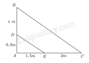 \(\begin{array}{l} \Rightarrow \frac{{0,9}}{x} = \frac{{1,5}}{2}\\ \Rightarrow 0,9.2 = 1,5x\\ \Rightarrow 1,8 = 1,5x\\ \Rightarrow x = 1,2\end{array}\)