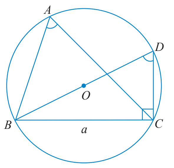 \( \Rightarrow \sin \widehat {BAC} = \sin \widehat {BDC} = \frac{a}{{2R}}.\)