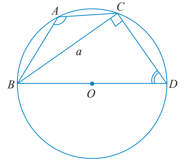 a) Tam giác BDC vuông tại C nên \(\sin \widehat {BDC} = \frac{{BC}}{{BD}} = \frac{a}{{2R}}.\)