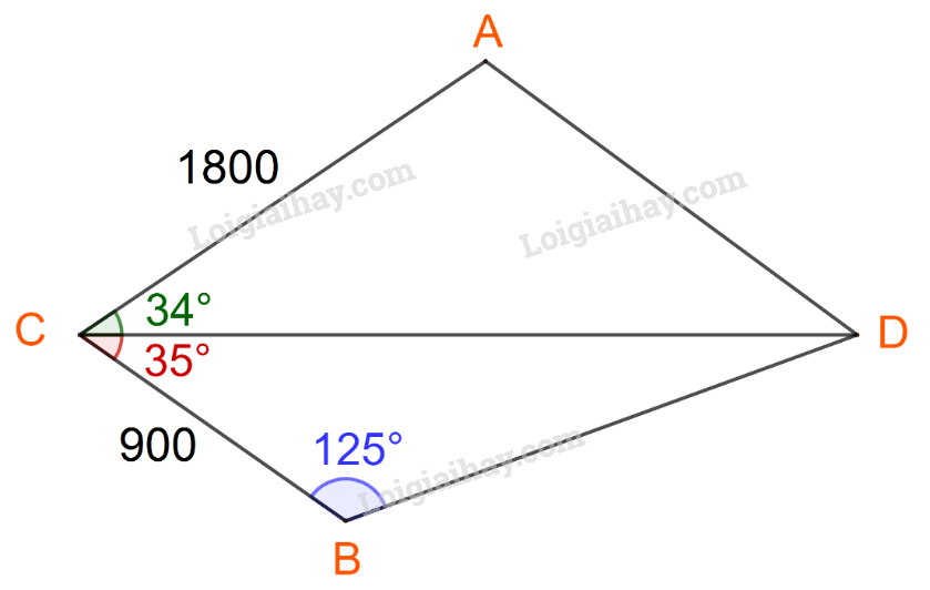 Ta có: \(CB = 900,\;\widehat {CDB} = {180^o} – ({125^o} + {35^o}) = {20^o}\)