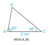 Vẽ thêm tam giác \({A^\prime }{B^\prime }{C^\prime }\) sao cho \({B^\prime }{C^\prime } = 3\;{\rm{cm}}\), \(\widehat {{A^\prime }{B^\prime }{C^\prime }} = {80^\circ },\widehat {{A^\prime }{C^\prime }{B^\prime }} = {40^\circ }.({\rm{H}}.4.34)\).