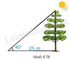 Bóng trên mặt đất của một cây dài 25 m. Tính chiều cao của cây (làm tròn đến dm) , biết rằng tia nắng mặt trời tạo với mặt đất góc \({40^0}\) (H.4.18).