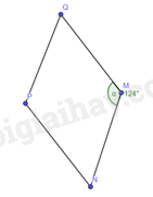 Hình thoi \(MNPQ\) có \(\widehat {NMQ} = 124^\circ \). Tính số đo góc \(MNQ\).