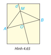 Trên mảnh giấy trong HĐ3, lấy điểm M bất kì trên đường thẳng d. Dùng thước thẳng có vạch chia kiểm tra xem AM có bằng BM không (H.4.65).